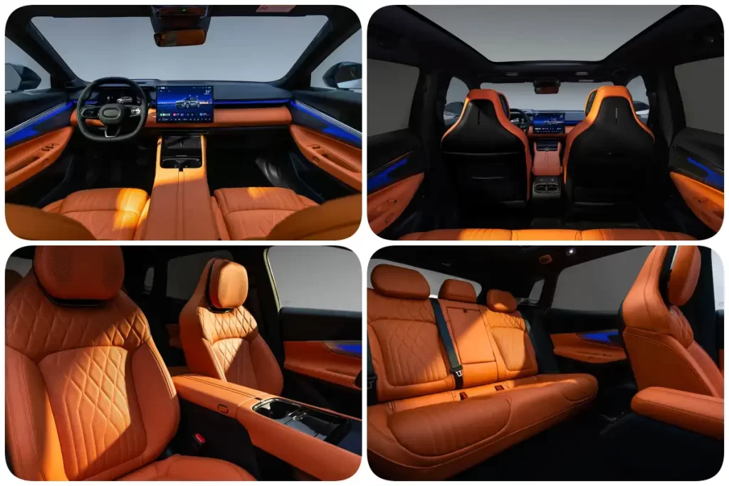 The plug-in hybrid powertrain is based on a 1.5T Evo engine, paired with the 3DHT Evo hybrid AWD + eAWD system. The dual-motor version features a P3 motor (180 kW) and a P4 motor (156 kW), for a combined output of 456 kW and peak torque of 905 N·m. This setup accelerates from 0–100 km/h in 4.6 seconds. The single-motor variant delivers 280 kW combined output and 615 N·m torque. Depending on configuration, CLTC pure electric ranges reach 120 km, 220 km, or 245 km. The SUV also offers FSD hydraulic variable damping suspension and CCD electronic “magic carpet” suspension for enhanced ride comfort.