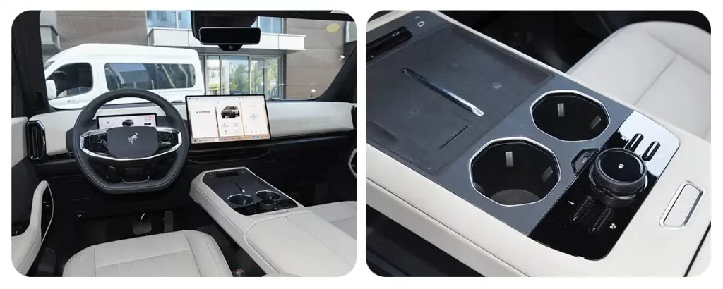 Inside, the Ford Smart Fun cockpit presents a clean and well-organised layout, featuring a clearly layered dashboard and materials aligned with segment expectations. The cabin is centred around a 15.6-inch 2.5K Mini-LED touchscreen, powered by the Qualcomm Snapdragon 8255 chip, and supported by an off-road 360-degree panoramic camera system and intelligent travel route planning. Additional features include a 70-inch AR-HUD head-up display, fully digital instrument cluster, wireless smartphone charging, AI voice large-model interaction, a 21-speaker audio system, a 7.5-litre dual-temperature in-car refrigerator, and a panoramic sunroof.