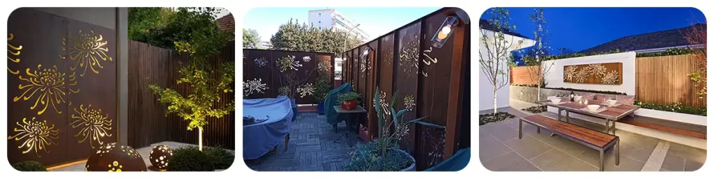 • GN-SP-801 Decorative Laser Cut Corten Steel Screen Panels with Chrysanthemum Design image 6