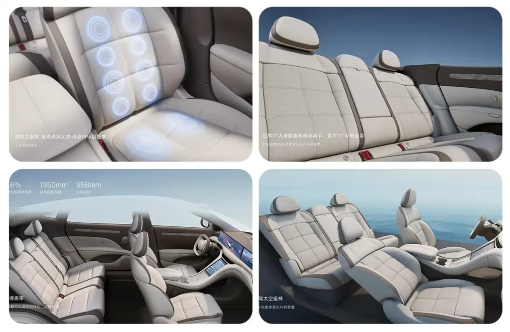The cabin is finished in “Earth Elephant Gray” with premium Star Vortex Feather-inspired trim, evoking the ambiance of a modern art exhibition. The ultra-wide-angle full-width steering wheel offers unobstructed visibility while maintaining a reassuring grip. The passenger seat adopts a new Space Chair mode, while the upgraded POPO Sofa 2.0 provides an 11-degree electric recline for rear passengers, enhancing comfort.