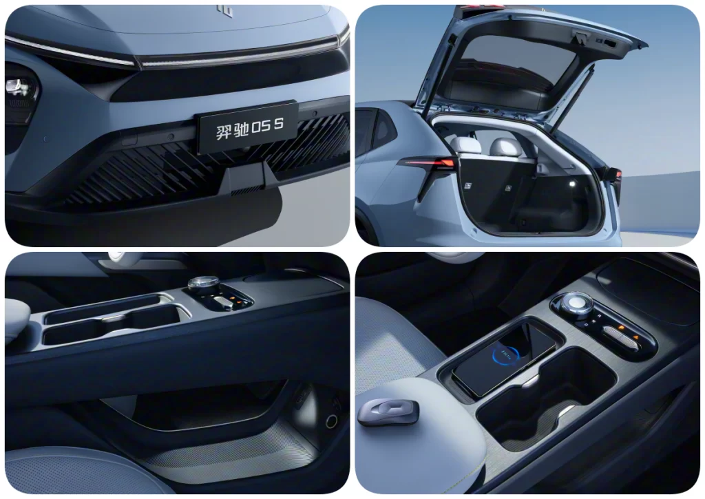 Inside, the JMEV Yichi 05S combines technology and practicality. The cabin features a dual-spoke steering wheel, a 10.25-inch digital instrument cluster, and a 12.3-inch central touchscreen forming an intuitive interactive triangle. The iFlytek infotainment system supports continuous voice commands, while the passenger-side dashboard integrates a 50W wireless fast charger with cooling fan. A hollowed-out compartment under the center console easily fits a handbag, and 26 storage spaces throughout the cabin further enhance usability.