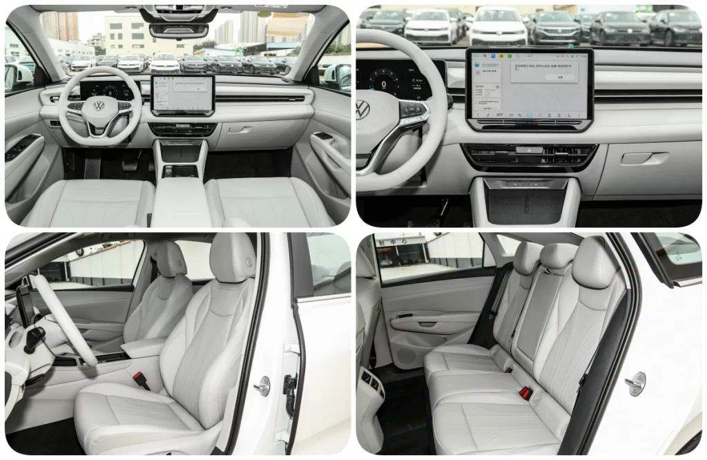 Inside, the cabin follows Volkswagen’s Pro family design language, featuring a floating central touchscreen paired with a standalone digital instrument cluster. The center console includes a wireless charging pad for smartphones, and the vehicle supports Apple CarPlay, CarLife, and HUAWEI HiCar connectivity.