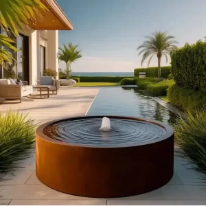 The Square Corten Steel Water Fountain not only serves as a visually arresting centerpiece but also offers a calming, meditative ambiance with its gentle, rhythmic flow. Its durable construction ensures that it will maintain its distinctive character and charm over time, blending seamlessly into both natural and built environments.